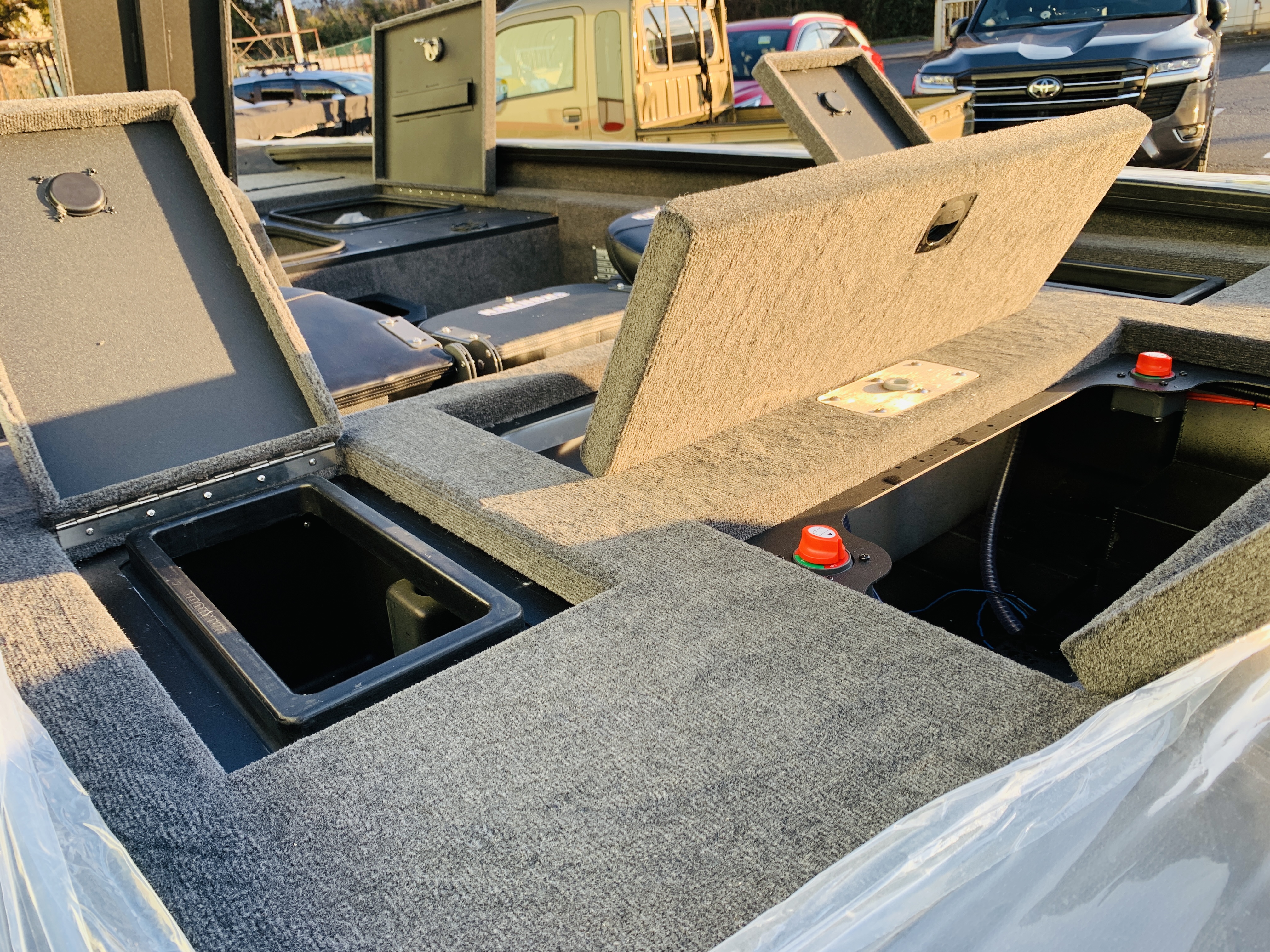 バスボートの高級感と価値を高めるために、従来のプラスチック製コンソールを、グラスファイバーと高品質の塗料を組み合わせたより洗練されたものに置き換えました。